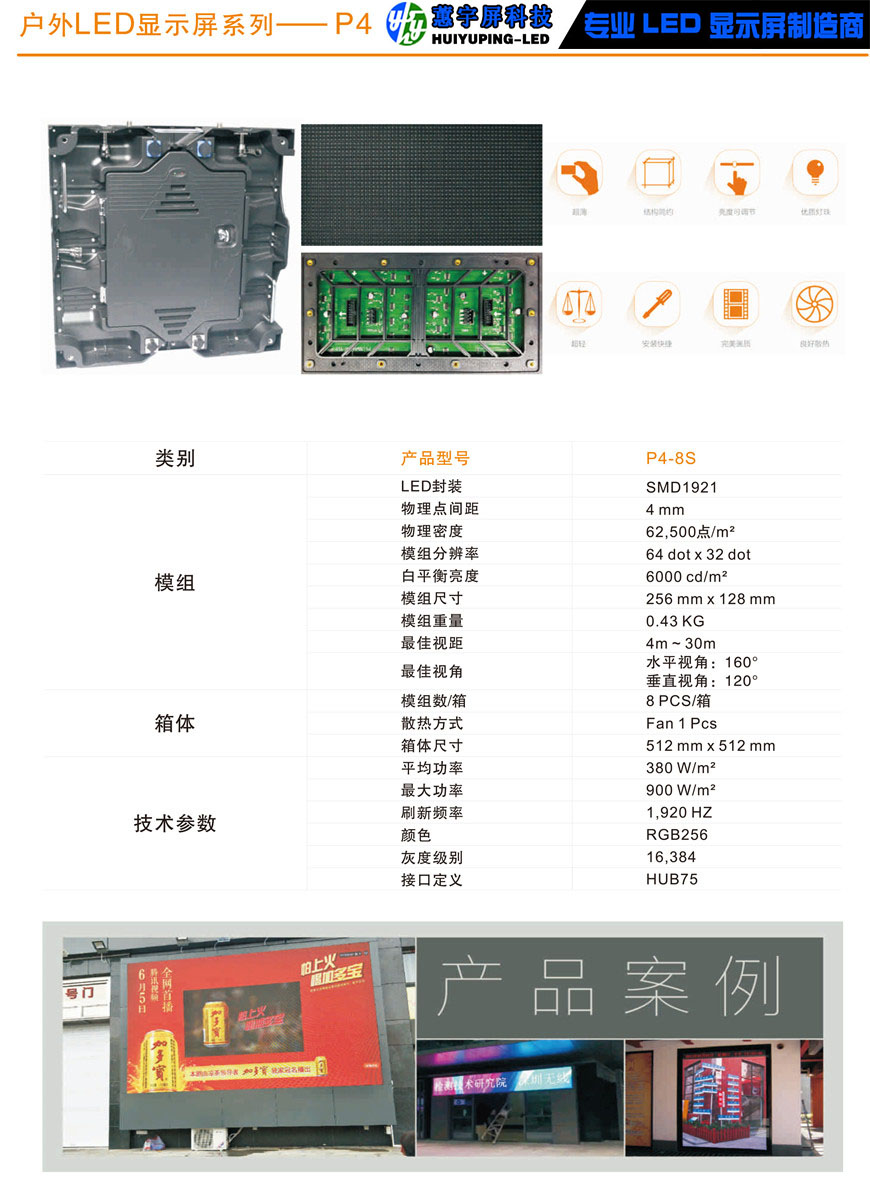 戶外P4全彩LED顯示屏產(chǎn)品特點(diǎn):